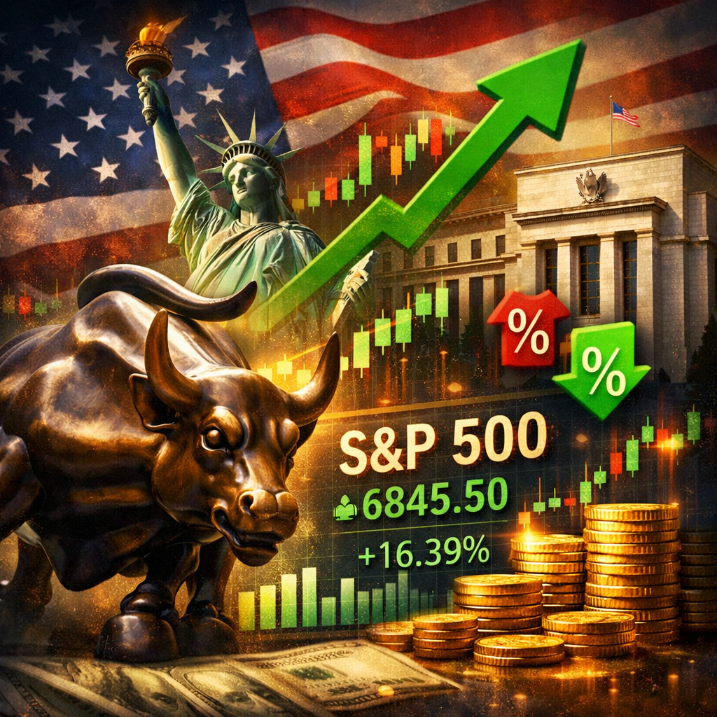 The S&P 500 finished 2025 higher, with official index data showing a ~16.39% one-year price return and an end-of-year index level around 6,845.50.