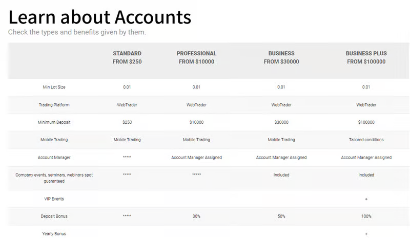The main public differentiation appears to be deposit size, while the platform provides limited detail explaining whether higher tiers offer different spreads, different fees, execution priority, or withdrawal handling. Without clearly documented benefits, traders cannot objectively judge whether account tiers represent real value differences or primarily encourage larger deposits.